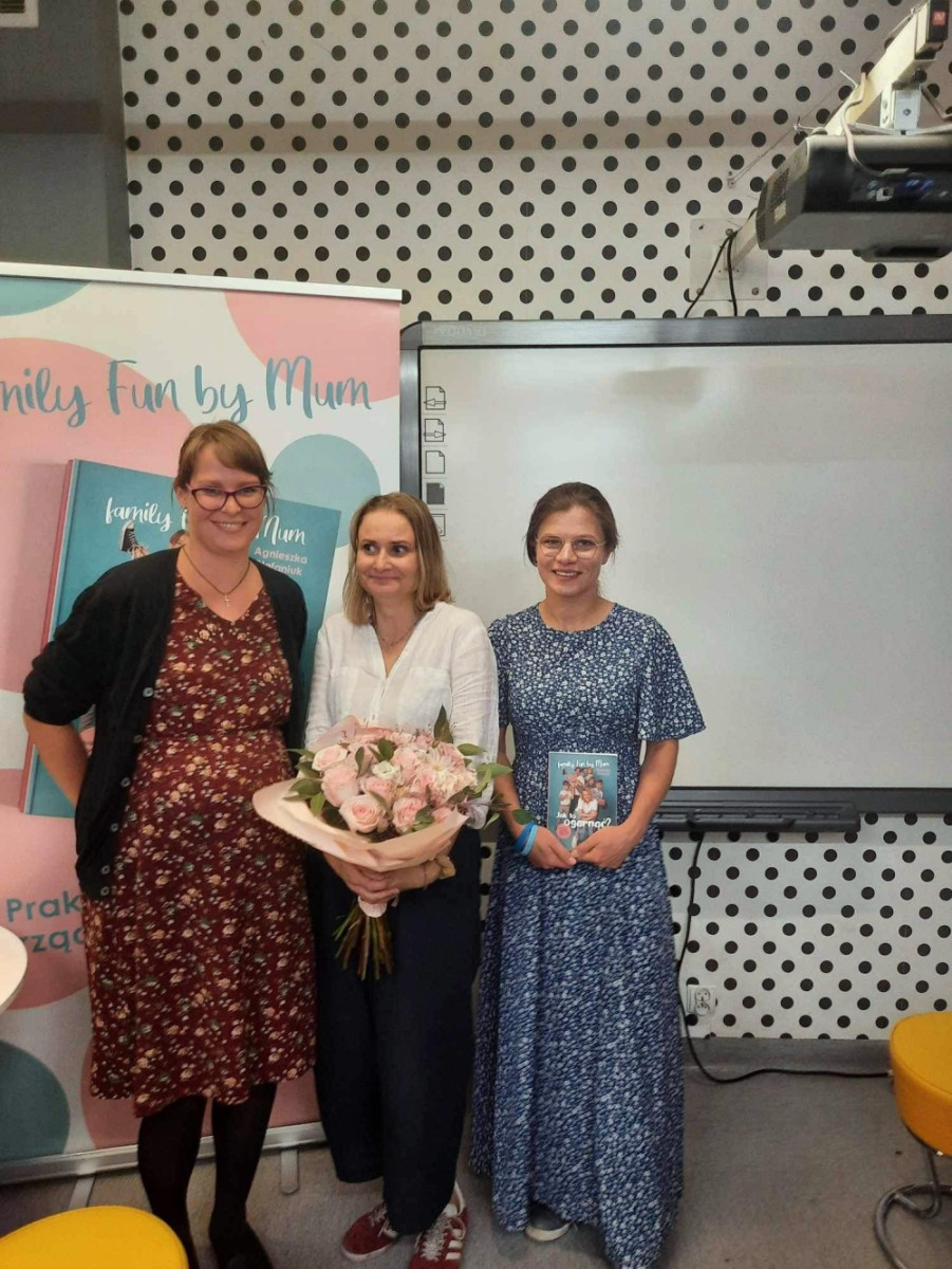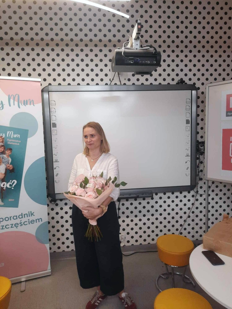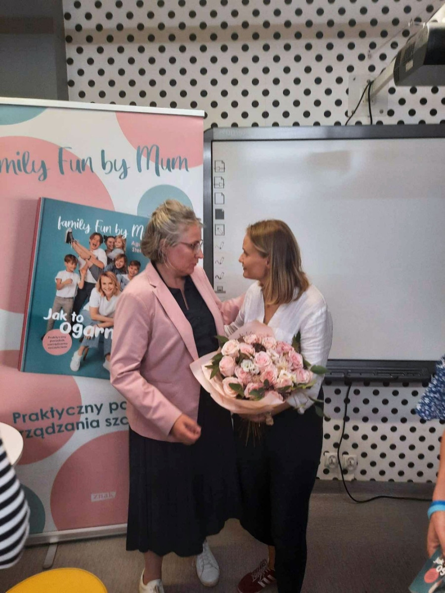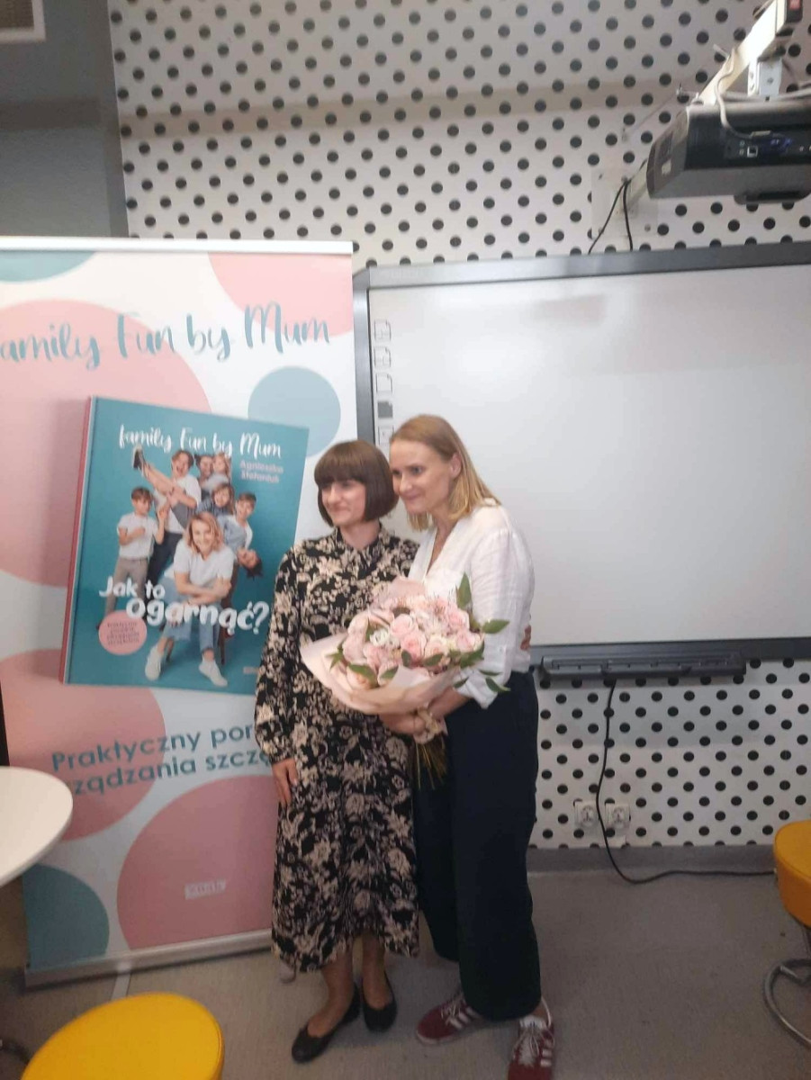 Agnieszka Stefaniuk jest wykwalifikowanym coachem, prowadzi własny blog i oferuje młodym matkom autorskie programy mentoringowe. Jej "family fun by mum" na Instagramie i strona "Silna jak mama" cieszą się ogromnym zainteresowaniem. W swojej książce pisze, że odczarowuje wielodzietność i pokazuje, jak, będąc matką, można dbać o swój rozwój i tworzyć rodzinę-drużynę, która się wspiera, lubi ze sobą spędzać czas i jest doskonałym miejscem wzrostu dla młodych ludzi. Autorka opowiadała o swoich problemach i sposobach na ich rozwiązywanie. Odpowiadała szczerze na pytania licznie zgromadzonych mam z humorem i uśmiechem. Jej dobra energia towarzyszyła uczestniczkom spotkania i maluchom, które dopełniły rodzinną atmosferę. Agnieszka Stefaniuk podpisywała książki i opowiadała o swoich przyszłych planach wydawniczych. Uczestniczki spotkania serdecznie dziękowały autorce z nadzieją na kolejne rozmowy, spotkania i książki.