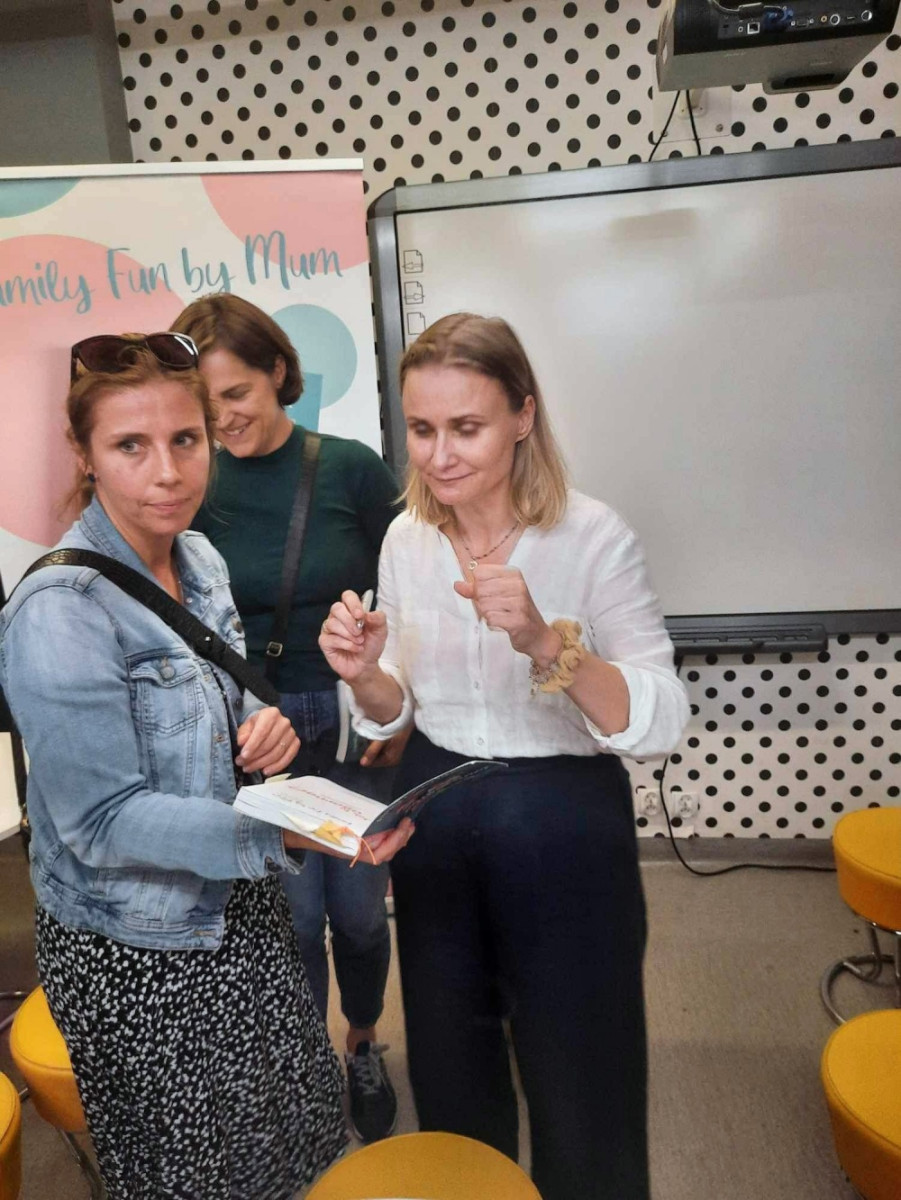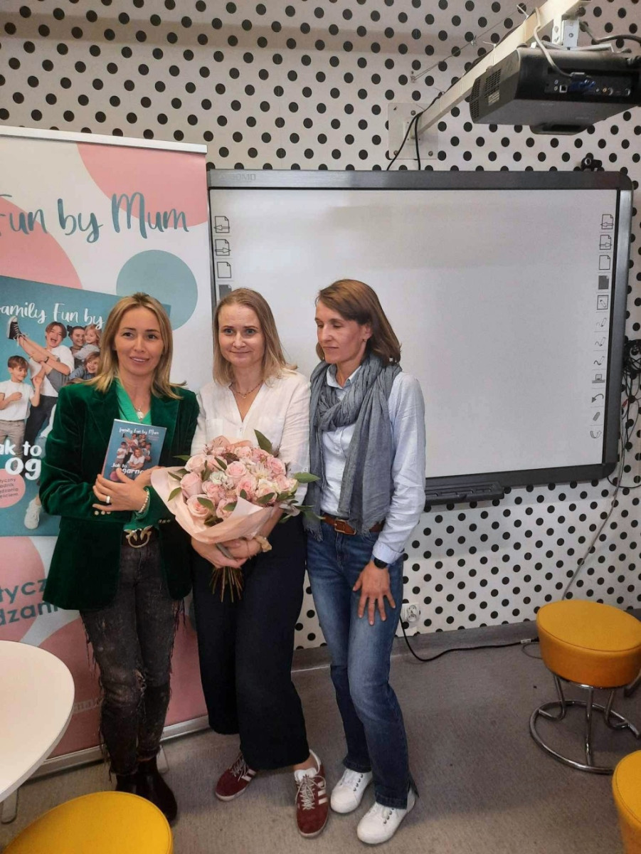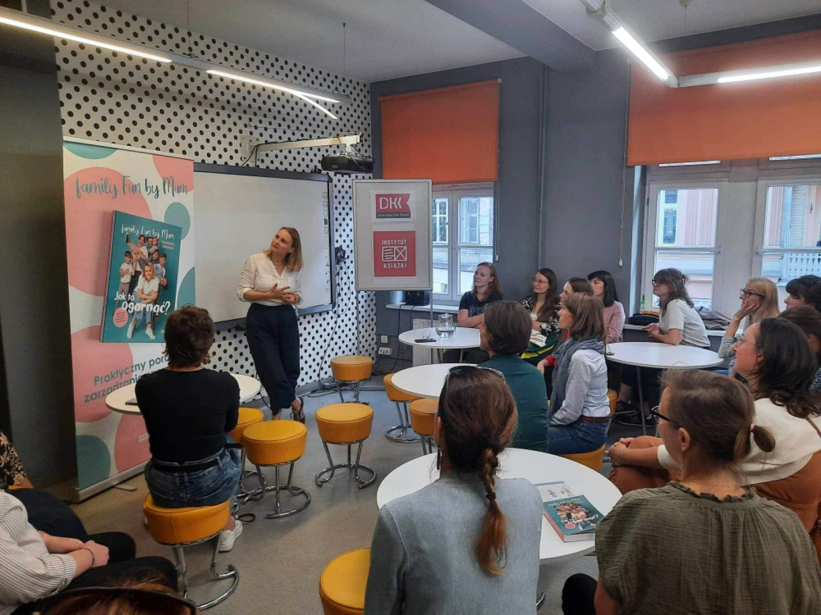 Agnieszka Stefaniuk jest wykwalifikowanym coachem, prowadzi własny blog i oferuje młodym matkom autorskie programy mentoringowe. Jej "family fun by mum" na Instagramie i strona "Silna jak mama" cieszą się ogromnym zainteresowaniem. W swojej książce pisze, że odczarowuje wielodzietność i pokazuje, jak, będąc matką, można dbać o swój rozwój i tworzyć rodzinę-drużynę, która się wspiera, lubi ze sobą spędzać czas i jest doskonałym miejscem wzrostu dla młodych ludzi. Autorka opowiadała o swoich problemach i sposobach na ich rozwiązywanie. Odpowiadała szczerze na pytania licznie zgromadzonych mam z humorem i uśmiechem. Jej dobra energia towarzyszyła uczestniczkom spotkania i maluchom, które dopełniły rodzinną atmosferę. Agnieszka Stefaniuk podpisywała książki i opowiadała o swoich przyszłych planach wydawniczych. Uczestniczki spotkania serdecznie dziękowały autorce z nadzieją na kolejne rozmowy, spotkania i książki.