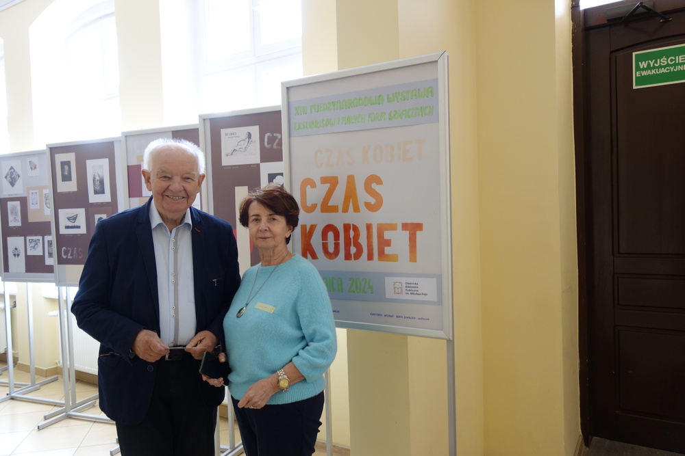 Z hasłem Tygodnia Bibliotek świetnie koresponduje temat XIII Międzynarodowej Wystawy Exlibrisów i Małych Form Graficznych „Czas kobiet”, w której wśród uczestników dominują właśnie artystki. Do kolekcji zgłoszono ponad 100 prac z 10 krajów. Organizatorka i kuratorka ekspozycji Beata Szukalska-Woźnicka powitała artystów, po czym żartobliwie opowiedziała o tegorocznej edycji przedsięwzięcia.