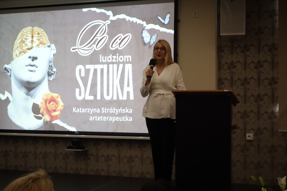 Anna Jach świetnie spisała się jako konferansjerka, zgrabnie zapowiadając kolejne punkty programu. Zamiast oficjalnych przemówień i wykładu „Po co (tak naprawdę) ludziom sztuka - psychiczny dobrostan dla zapracowanych, ambitnych i pod presją” z radością przyjęliśmy zabawę z emocjami, którą zaproponowała arteterapeutka Katarzyna Stróżyńska. Spontaniczny śmiech przywołał rodzinną atmosferę i poczuliśmy zamierzony dobrostan.