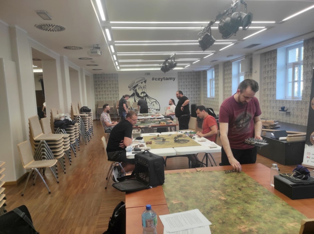 W tym samym czasie, na przodzie sali, trwał turniej gry bitewnej "SAGA", zorganizowany przez stowarzyszenie Zgraja Oleśnica.