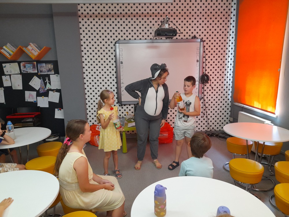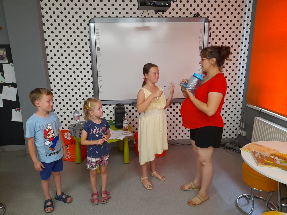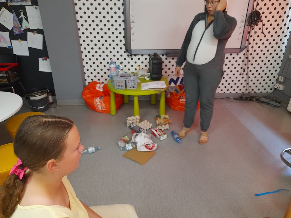 Chociaż o segregacji odpadów i szeroko pojętym recyklingu mówi się wiele, niektóre zagadnienia były dla dzieci nowe, co utwierdza organizatorów o konieczności prowadzenia tego typu działań. Pani Kamila z "Lisiego Zakątka" wspaniale rozwinęła temat, wzbogacając zajęcia przedstawieniem aktywizującym dzieci. Tradycyjnie były quizy, krzyżówka, animacje przy muzyce i dużo radości. Kolejne zajęcia poświęcone będą tworzeniu gier planszowych z materiałów recyklingowych.