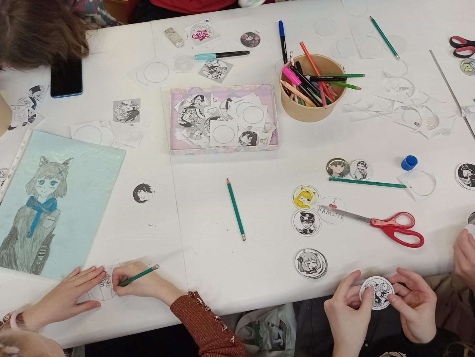 Kreatywne dusze mogły spróbować swoich sił w projektowaniu własnych przypinek – niektóre z nich przedstawiały ukochanych bohaterów anime, inne były autorskimi, niepowtarzalnymi dziełami. Składaliśmy też origami oraz tworzyliśmy papierowe wycinanki.