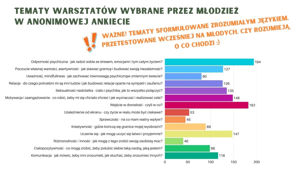 Tematy, które będą dla nas szczególnie ważne w tej edycji to m.in.: hejt i przeciwdziałanie przemocy, emocje, budowanie poczucia własnej wartości, motywacja i zaangażowanie, budowanie relacji, komunikacja i empatia.