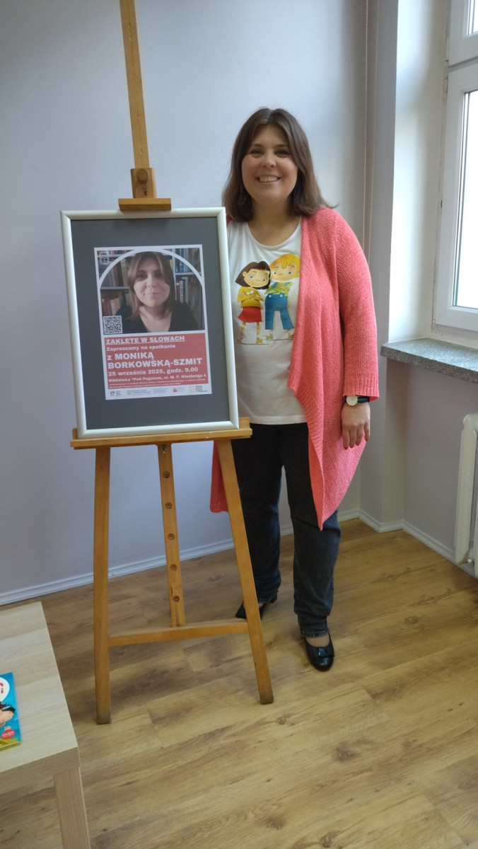 30 Września 202525 września Biblioteka Pod Pegazem gościła Monikę Borkowską-Szmit, dziennikarkę, poetkę oraz autorkę książek dla dzieci i młodzieży. Opowiedziała uczniom, że została pisarką niedawno, na prośbę swoich dzieci. Ponieważ pierwsza książka bardzo im się spodobała, postanowiła napisać drugą a potem trzecią i już ma pomysł na kolejną.
