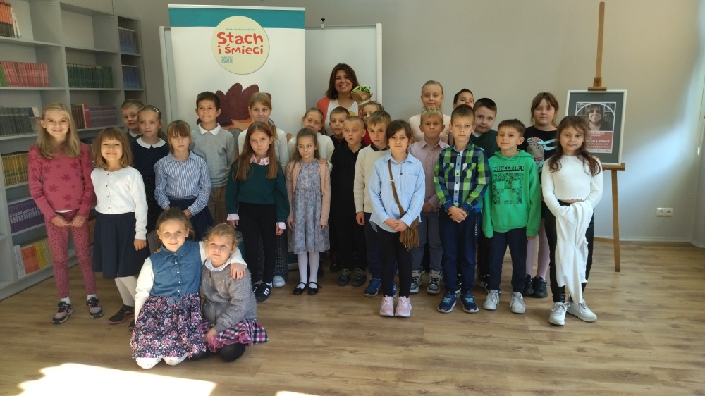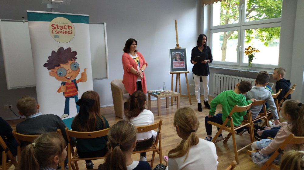 "Stach i śmieci", "Stach i smog" to powieści ekologiczno-detektywistyczne. Wywiązała się bardzo ciekawa dyskusja o zaśmiecaniu lasu, dlaczego segregujemy śmieci, czemu dzieci chorują na astmę, jak dokarmiać zwierzęta i innych tematach. Uczniowie poznali etapy powstawania książki: od pomysłu autorki, poprzez pracę ilustratora, korektora, redaktora, wydawnictwa. Okazało się, że jedna osoba rysuje komiksy.