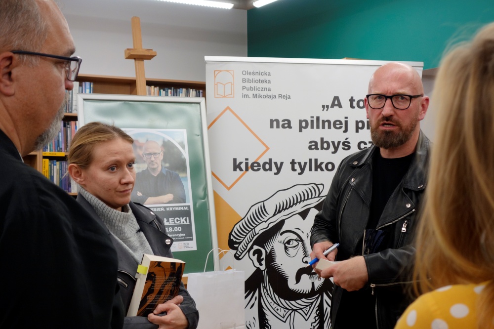 7 Listopada 2025Za nami kolejne spotkanie z cyklu "Wystrzałowa jesień. Kryminał w roli głównej". Gościem oleśnickiej biblioteki był Robert Małecki, jeden z najpopularniejszych autorów powieści kryminalnych. Rozmowa toczyła się wokół jego twórczości, pasji i fascynacji literackich. Opowiadał o kulisach pracy nad książkami, zdradził, jak powstają jego złożone fabuły oraz o tym, skąd czerpie pomysły na intrygujące historie. Nie zabrakło ciekawych pytań od publiczności, zdjęć, autografów i rozmów w kuluarach.