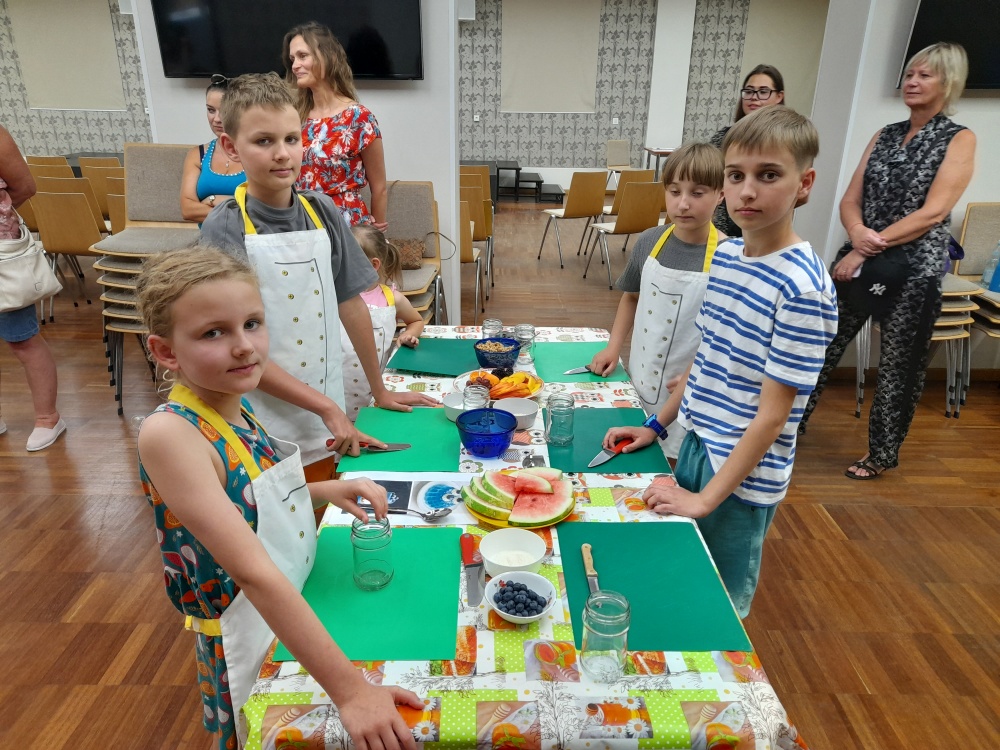 8 Lipca 2025Nie ma to jak zacząć upalny lipiec czymś smacznym i chłodnym. Okazją do tego, były kolejne warsztaty literacko-kulinarne z panią Beatą Papierz w ramach projektu BLISKO. Tym razem smakołyki-desery przygotowywane przez małych kuchcików, inspirowane były mroźnym klimatem baśni "Królowa Śniegu" oraz "Krainą lodu". Jak zawsze, pani prowadząca zachęciła do przygotowania dań ze zdrowych składników, naturalnie słodkich i odżywczych.
