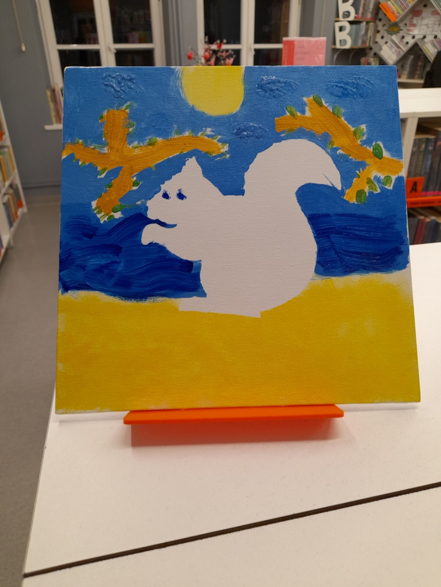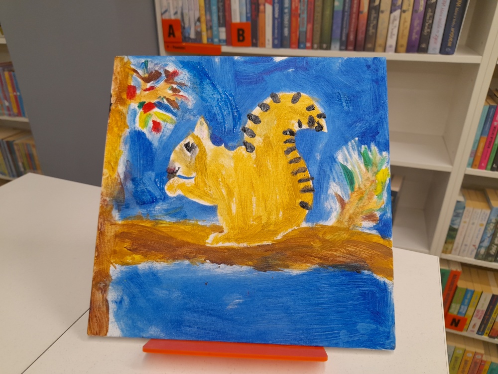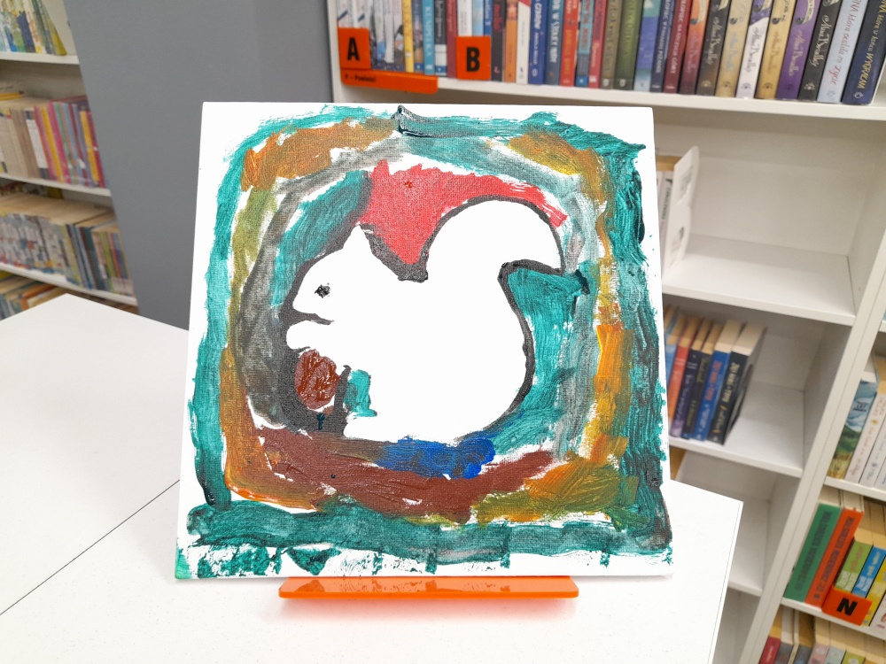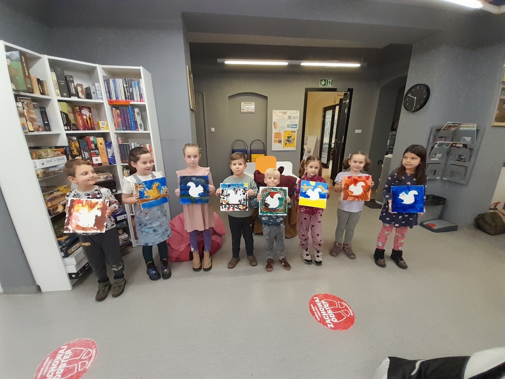 Po wysłuchaniu opowiadania klubowicze stworzyli fantazyjne, kolorowe prace malarskie, a mimo niesprzyjającej aury w bibliotece zapanowała feeria barw i niezwykłych pomysłów. Uczestnicy kolejny raz zaskoczyli nas swoją kreatywnością i prawdziwie artystyczną wizją. Zapraszamy do odwiedzenia wirtualnej galerii prezentującej te piękne prace.