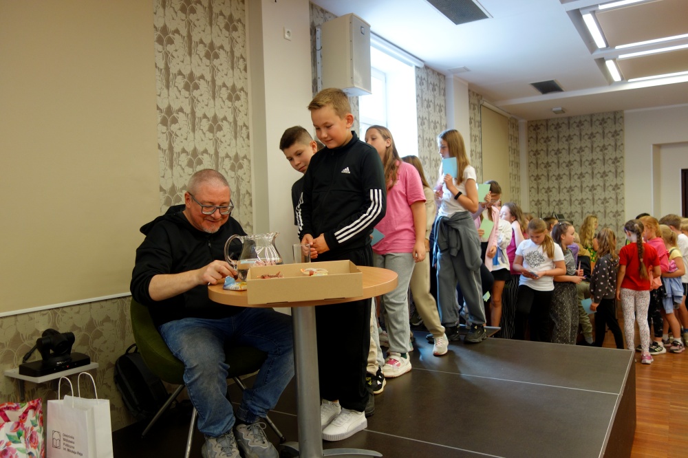 Spotkanie przebiegało w atmosferze pełnej śmiechu i pozytywnej energii. Autor mówi, że jego mottem jest: „słowa niosą uśmiech” – i rzeczywiście, uśmiech nie schodził z twarzy uczestników. Na zakończenie dzieci i dorośli mieli okazję zdobyć autograf oraz zamienić kilka słów z pisarzem.