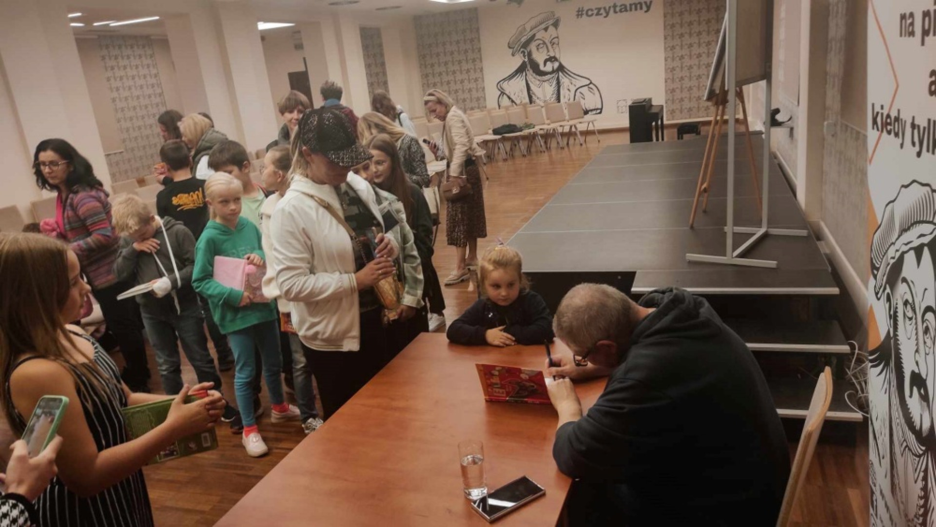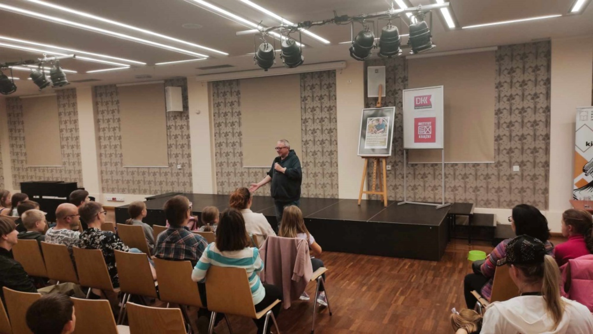 - Spotkanie autorskie z Marcinem Pałaszem - o godzinie 17.00 odbyło się spotkanie z autorem książek dla dzieci, w tym serii „Elfomania”. Pan Marcin, z właściwym sobie poczuciem humoru, opowiadał o początkach swojej przygody z pisaniem i powstawaniu kolejnych książek. Gościem specjalnym był główny bohater wspomnianej serii - pies Elf. Spotkanie dofinansowane było przez Instytut Książki w ramach Dyskusyjnego Klubu Książki.