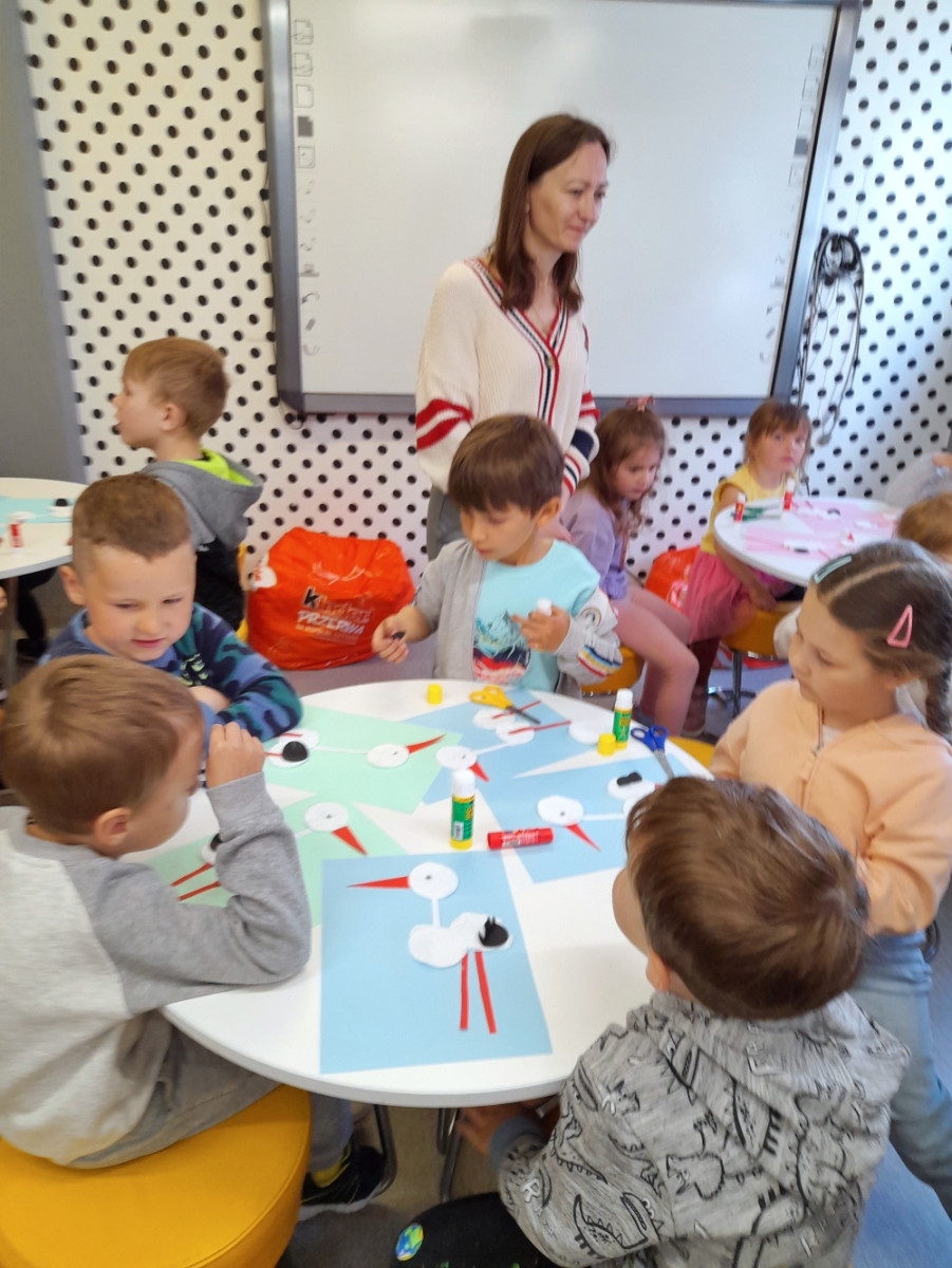 11 Maja 2023W mijający, majowy tydzień gościnne progi Biblioteki dla Dzieci i Młodzieży odwiedziły przedszkolaki z dwóch oleśnickich przedszkoli. Jako pierwsze, miały okazję uczestniczyć w zajęciach bibliotecznych dzieci z grupy Cytrynowej z Przedszkola „Mali Odkrywcy”. Nasi goście nie tylko poznali regulamin biblioteki, lecz także mieli okazję dowiedzieć się o zwyczajach bocianów białych oraz wysłuchać opowiadania o „Bocianie Guciu”. Każdy przedszkolak wykonał własny, plastyczny wizerunek boćka.