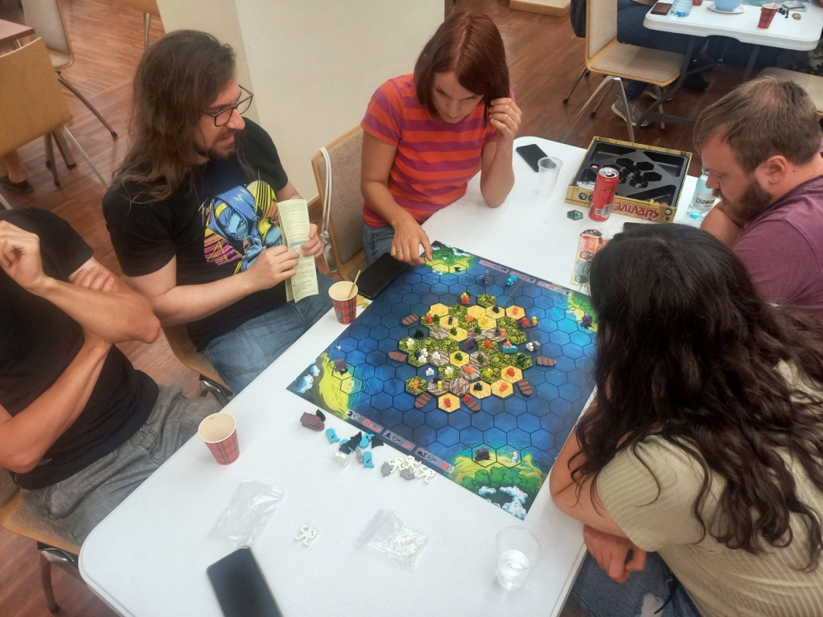 Uczestnicy mogli bawić się przy dobrze znanych planszówkach, ale także testować gry, które oficjalnie nie są jeszcze możliwe do wypożyczenia w bibliotece. Ponadto była to świetna okazja do obserwowania akcji toczącej się na stołach przeznaczonych dla gier bitewnych!