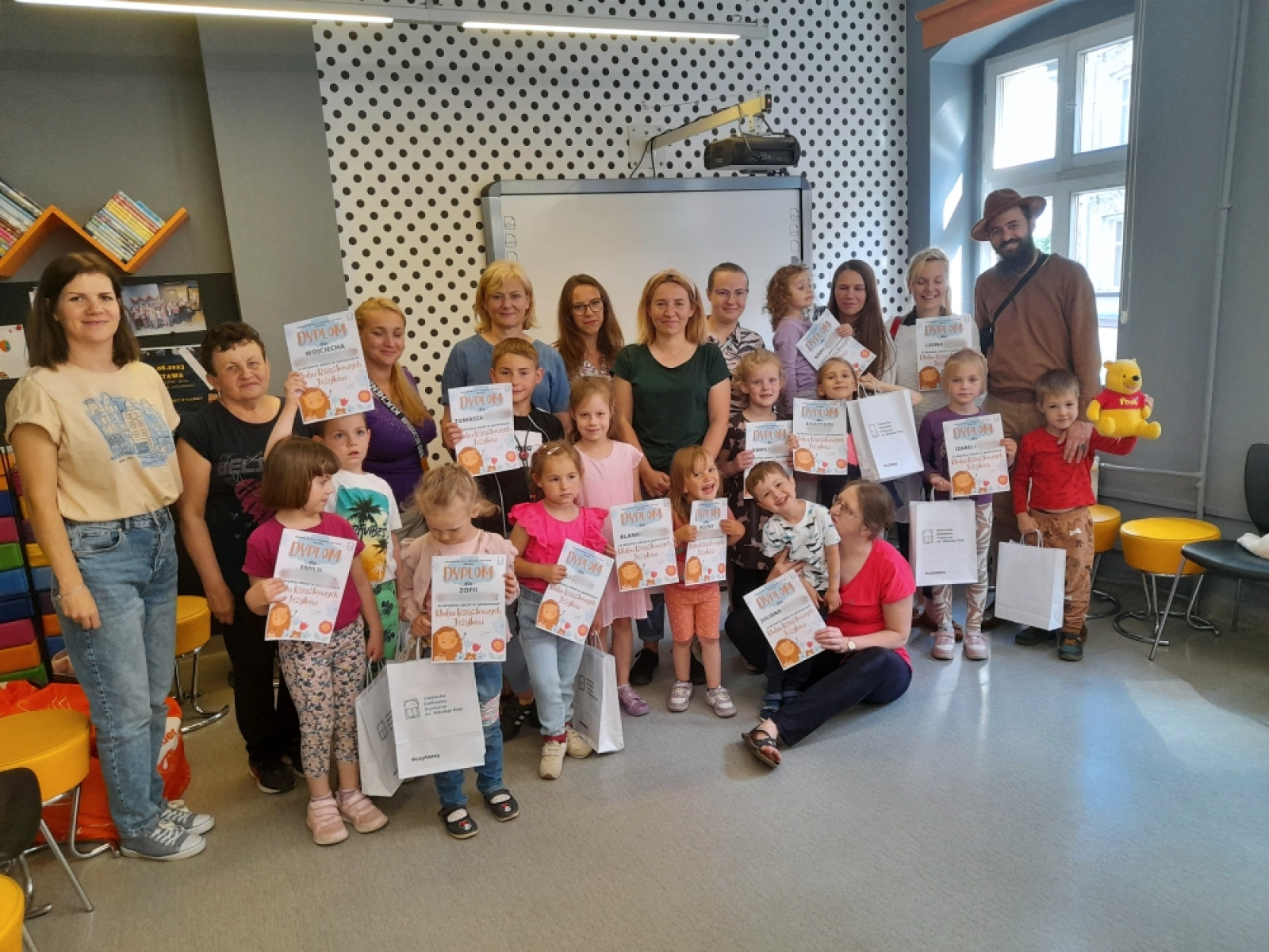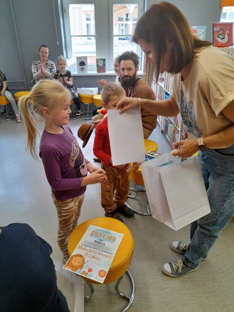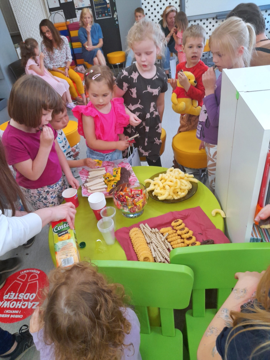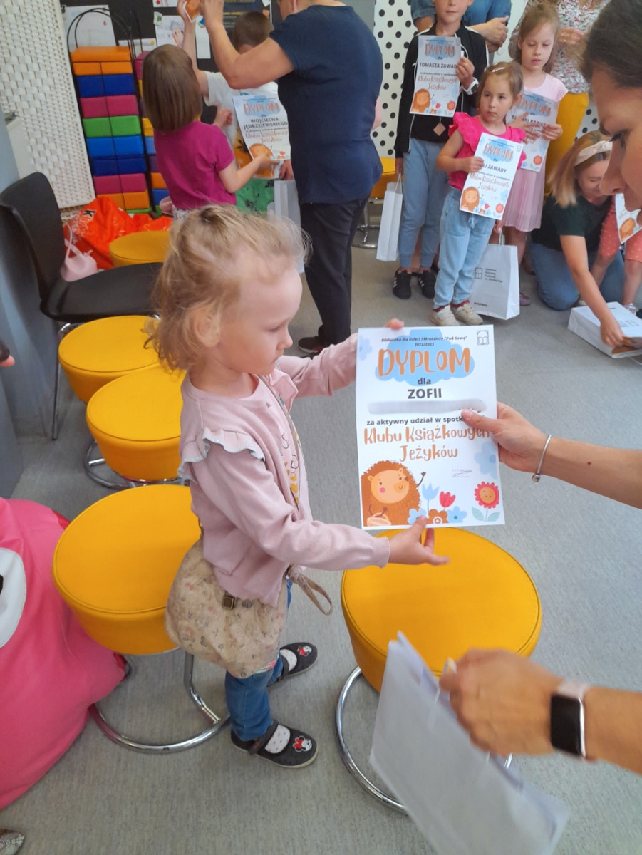 Mali Klubowicze zostali uhonorowani dyplomami oraz książkami za aktywny udział w spotkaniach. O dobrą zabawę zadbała również pani Katarzyna Szpak - instruktorka choreoterapii, która uświetniła zakończenie poprzez zabawy integracyjne dla Jeżyków. Była więc muzyka i dużo śmiechu, był słodki poczęstunek i świetny humor. I mimo że Klub robi sobie wakacyjną przerwę to Biblioteka dla Dzieci i Młodzieży nie zwalnia tempa i już teraz zaprasza do spędzenia wakacji w Bibliotece „Pod Sową”. Czeka na Was wiele ciekawych zajęć.