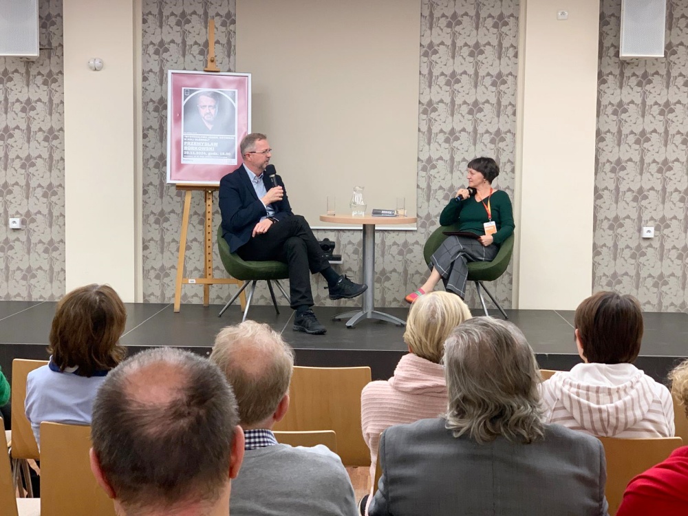 Gościem oleśnickiej Biblioteki był Przemysław Borkowski- pisarz, poeta, felietonista, scenarzysta i artysta kabaretowy. Współtwórca i aktor Kabaretu Moralnego Niepokoju. Jego wiersze i opowiadania były publikowane na łamach „Frondy”, „Odry” i „Twórczości”. Przede wszystkim znany jest jako autor kryminałów z psychologiem Zygmuntem Rozłuckim oraz prokurator Gabrielą Seredyńską.
