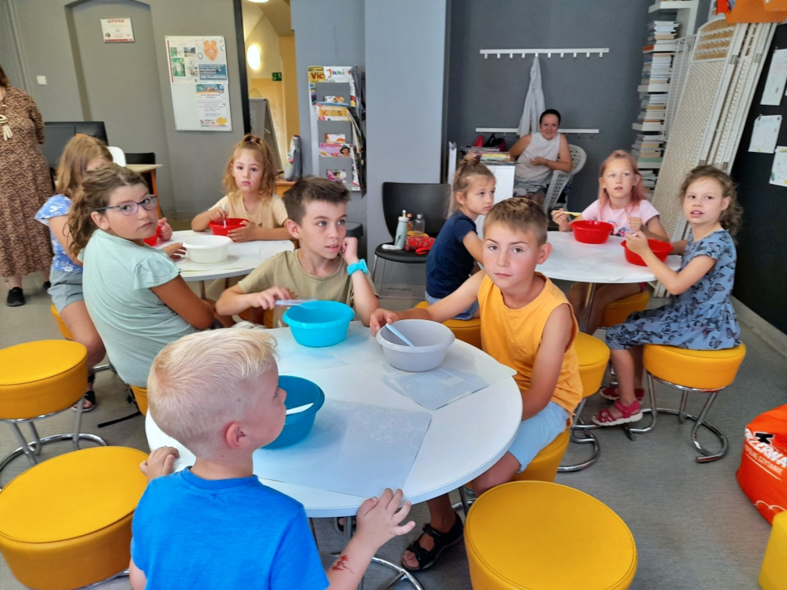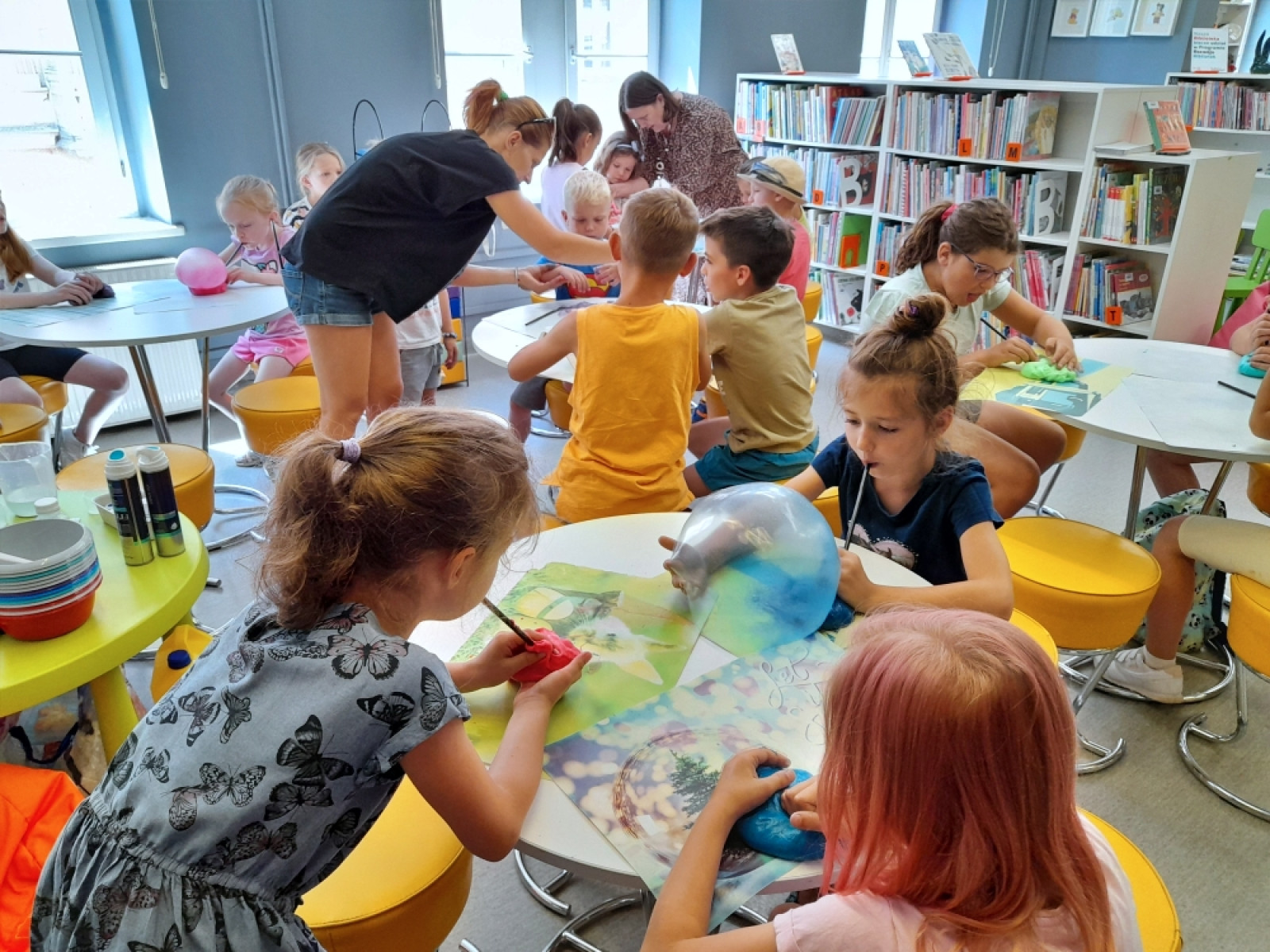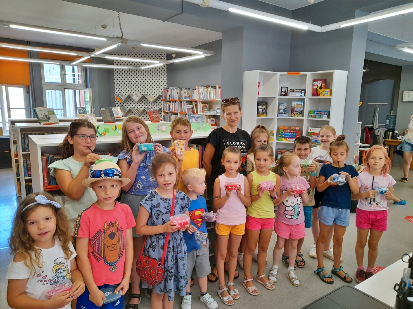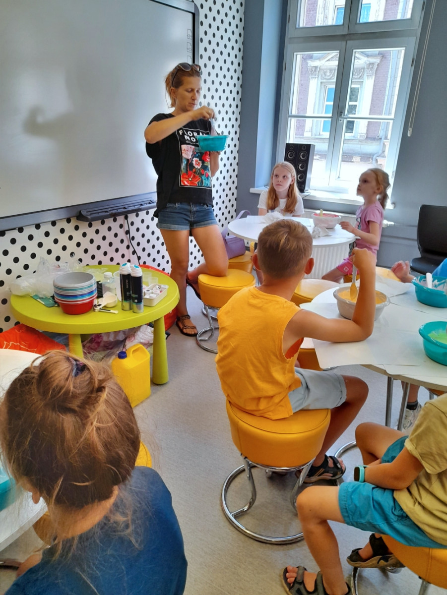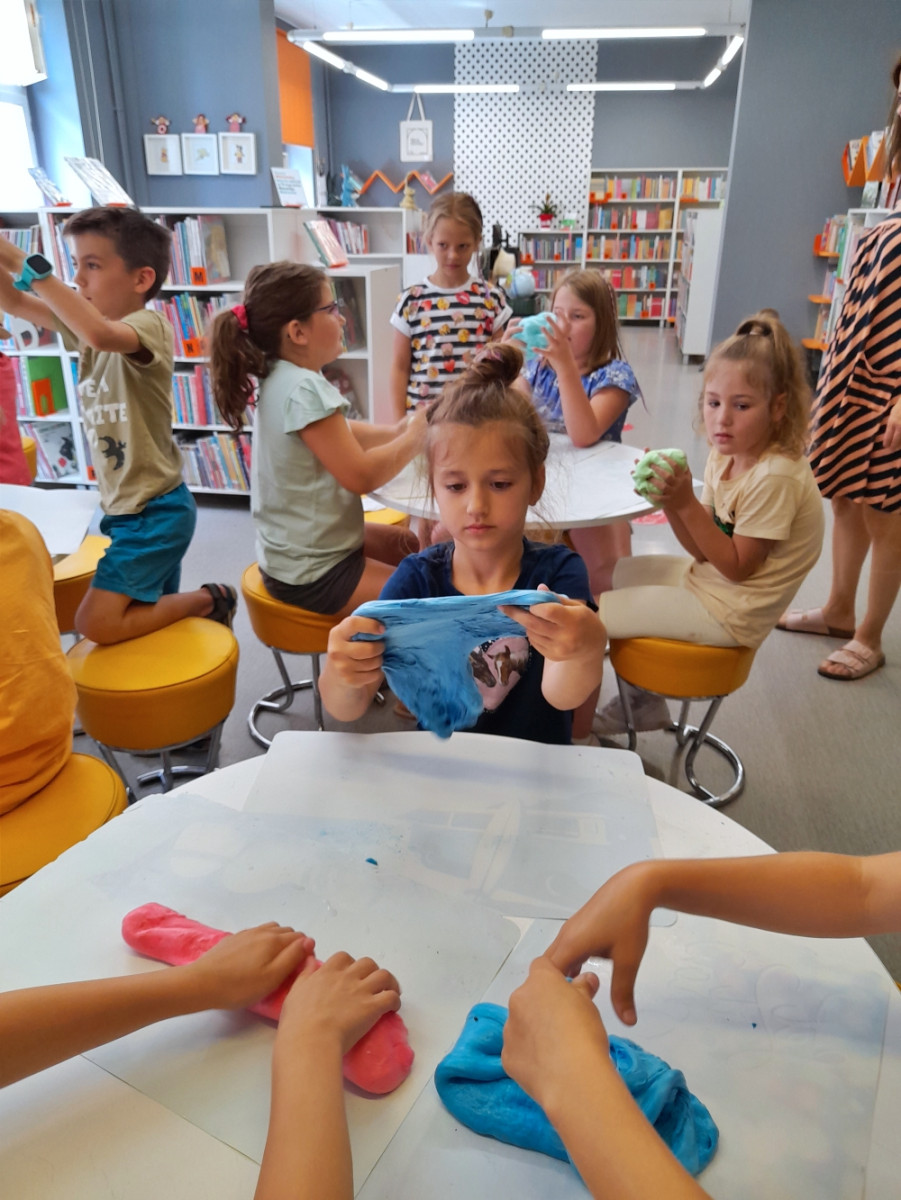 Uczestnicy zajęć wakacyjnych w Bibliotece Pod Pegazem