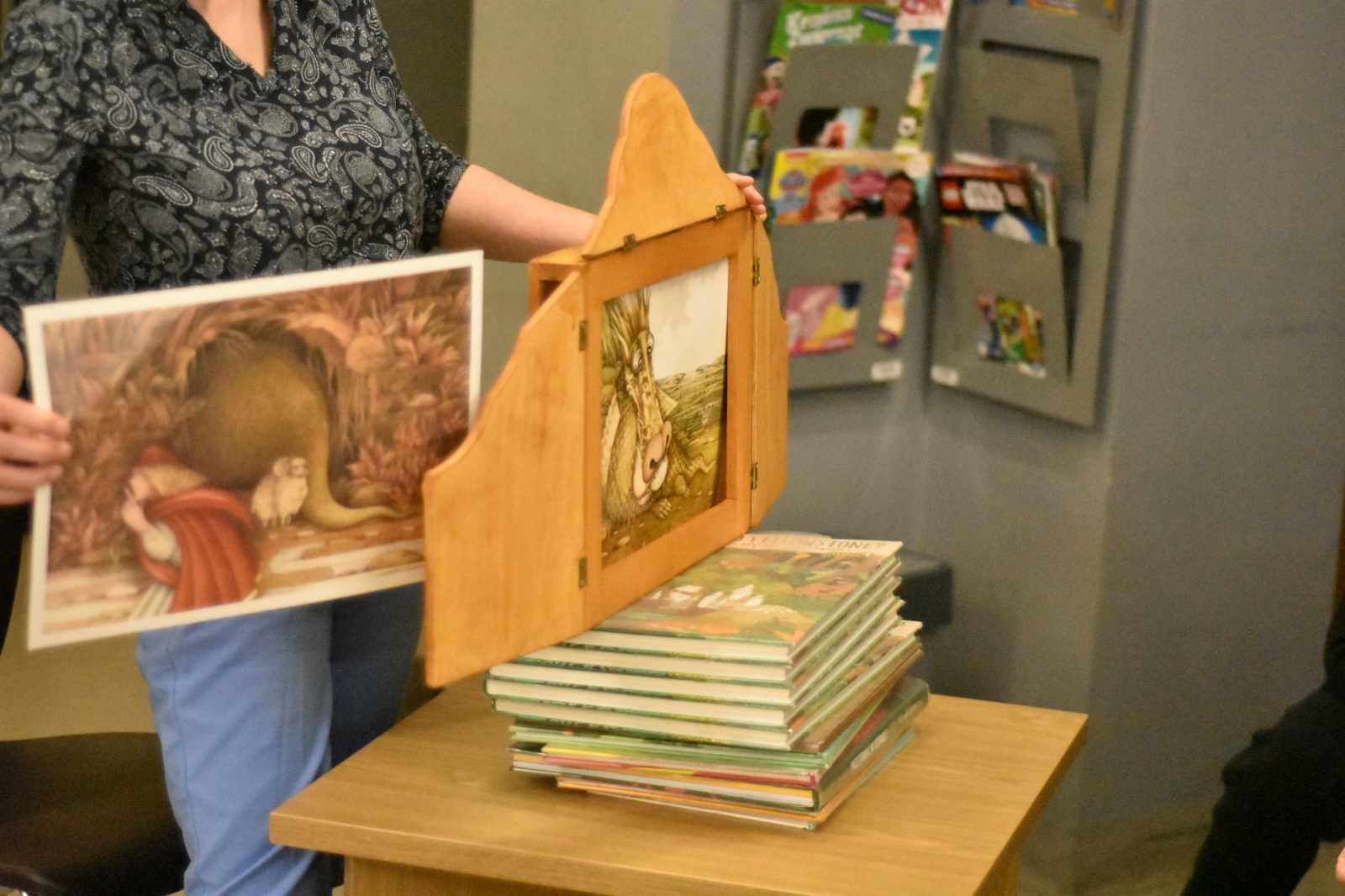 Spotkanie było wyjątkowe, bo Pani Magda oprócz tego, że pisze książki dla dzieci, młodzieży i dorosłych o ważnych dla nich sprawach, to jeszcze zajmuje się tworzeniem teatru kamishibai, japońskiej formy teatralnej łączącej tekst i obraz.