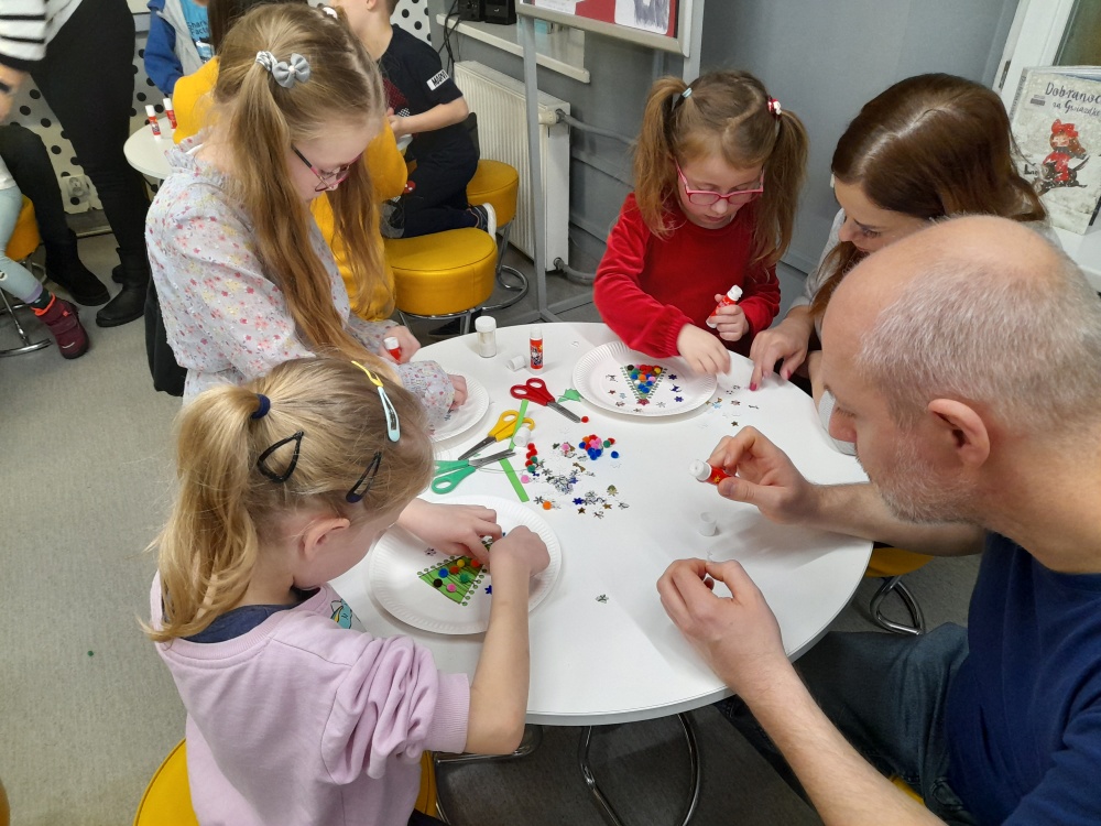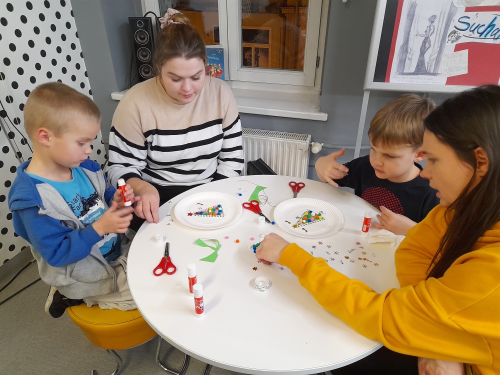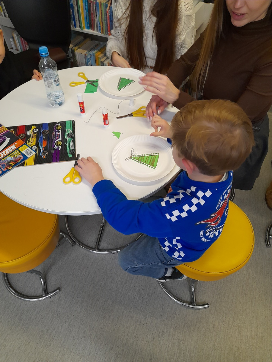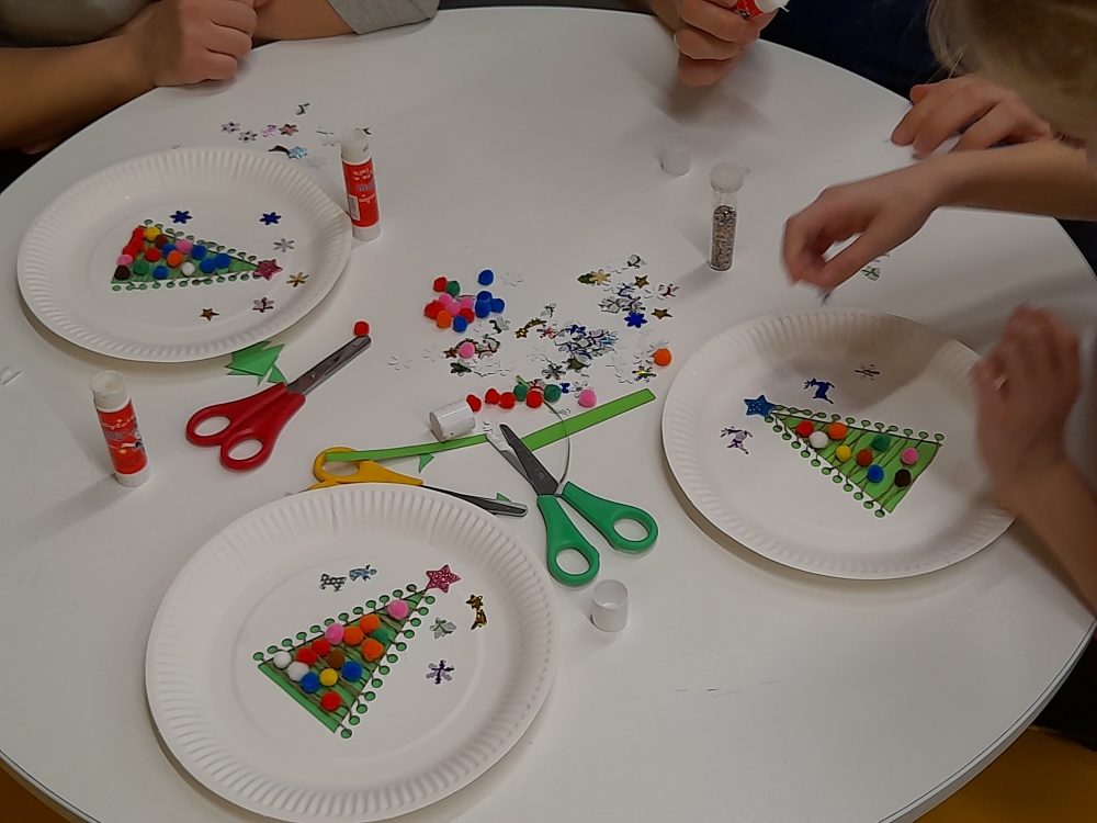 Tego dowiedzieli się uczestnicy zajęć, którzy wysłuchali historii pewnego Sera z książki "Wielki Ser i Święta Stulecia". Opowiadanie było zaskakujące i zabawne, a świąteczny nastrój książki zainspirował uczestników do wykonania pracy plastycznej - kolorowej choinki na papierowym talerzyku. Dzieci pięknie i, jak zawsze, pomysłowo przystroiły świąteczne drzewka.