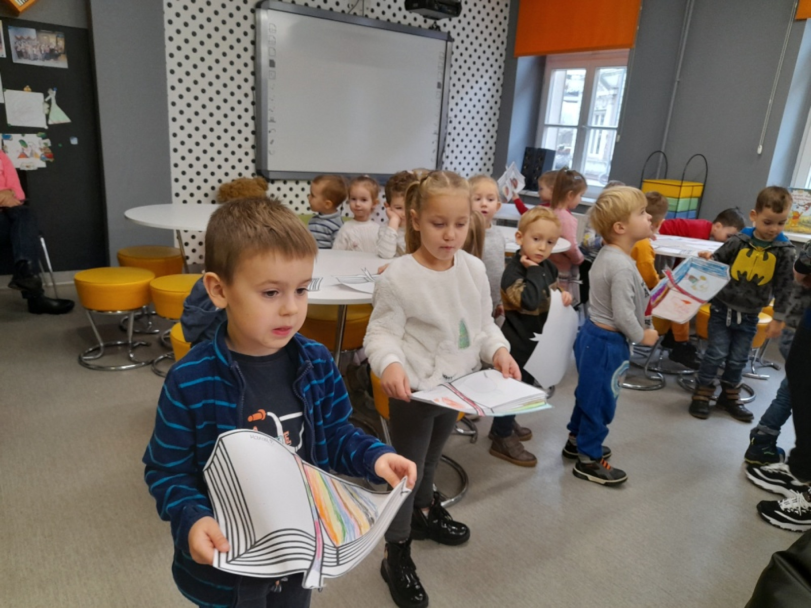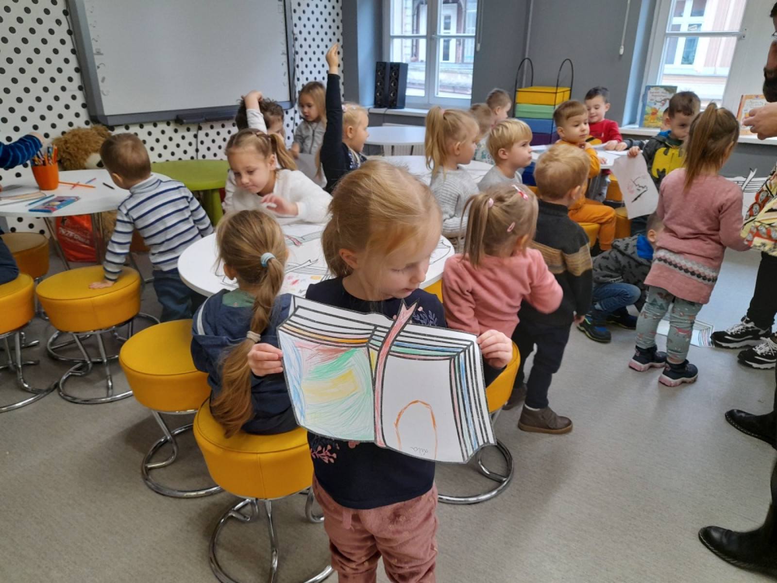 Dzieci zainspirowane powieścią narysowały swoje historie na szablonach książek. Na koniec wysłuchały opowiadania Anieli Cholewińskiej-Szkolik "Petit maluje wieżę Eiffla", które łączy w sobie historię o przyjaźni i pasji do sztuki.