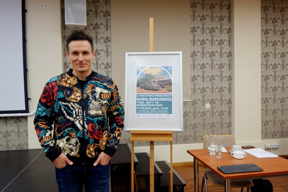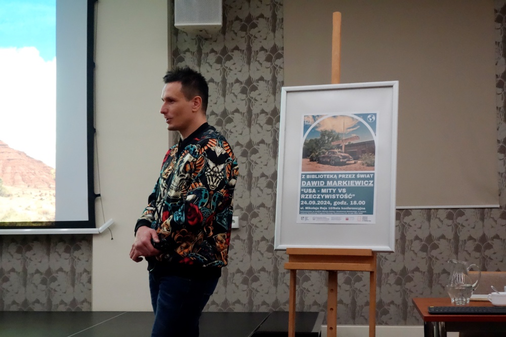 16 Października 2024Dawid Markiewicz, prozaik, poeta, podróżnik i fotograf, zabrał nas w podróż po Stanach Zjednoczonych Ameryki. Z opowieści Dawida wyłania się kraj pełen kontrastów, wspaniałej architektury, przyrody i gościnnych mieszkańców. W trakcie spotkania poznaliśmy miejsca, które przypominają nam o jego potędze. Ale również tę mroczną stronę, pełną przemocy, gangów, biedy i opioidów, które tworzą niechlubną historię Ameryki.