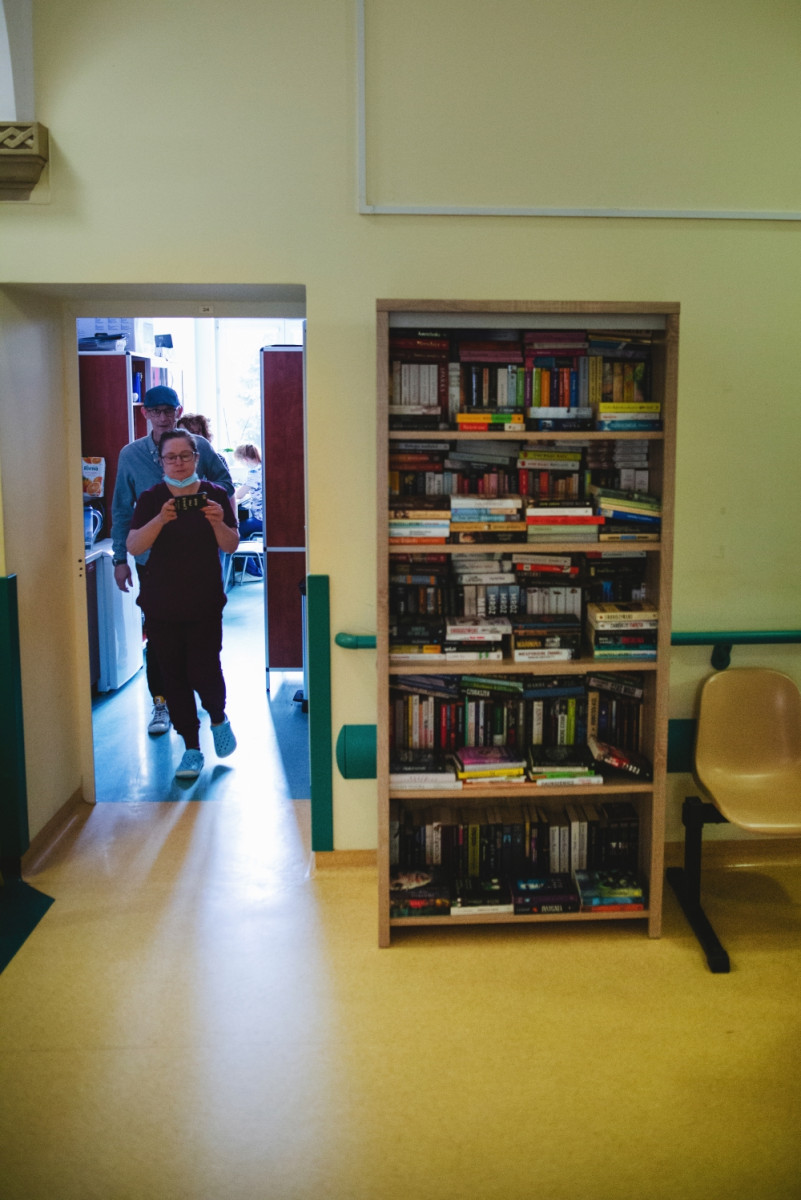 Ostatnim działaniem było złożenie całości i transport do Wrocławia. Oficjalnie więc 29.05.2023, w poniedziałek, ruszyliśmy w trasę i wszystko bezpiecznie dotarło na miejsce. Wypełniliśmy nie tylko nasz regał, ale także „odświeżyliśmy” dwa księgozbiory, które usytuowane były jeszcze w dwóch różnych punktach oddziału. Od teraz wszyscy pacjenci mają dostęp do różnorodnej literatury - od książek obyczajowych, poprzez kryminały, poradniki, fantastykę czy książki historyczne.