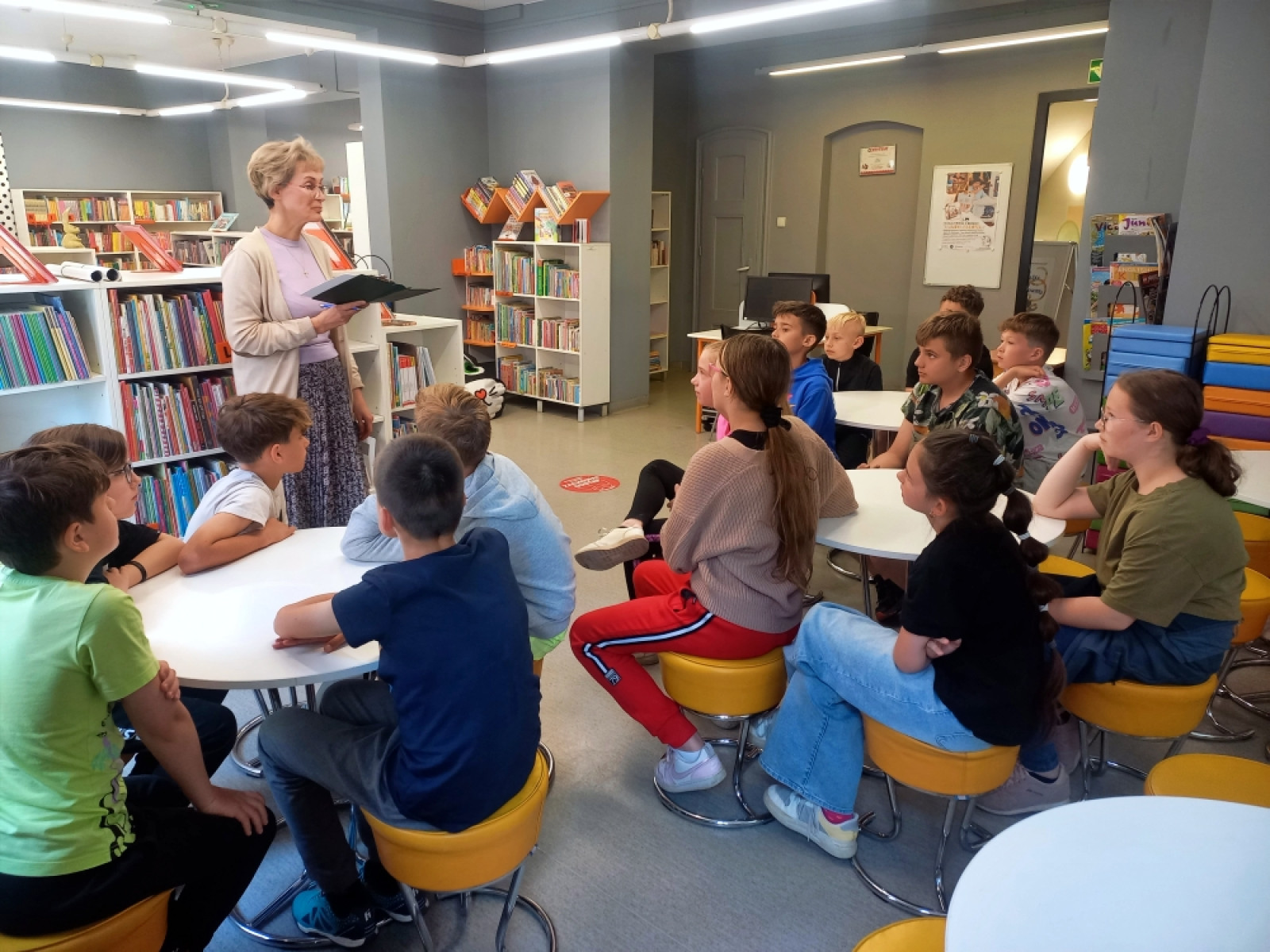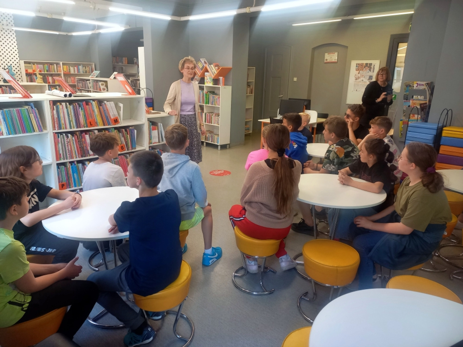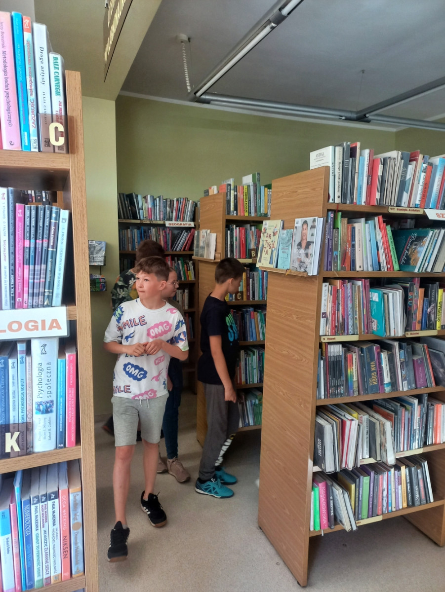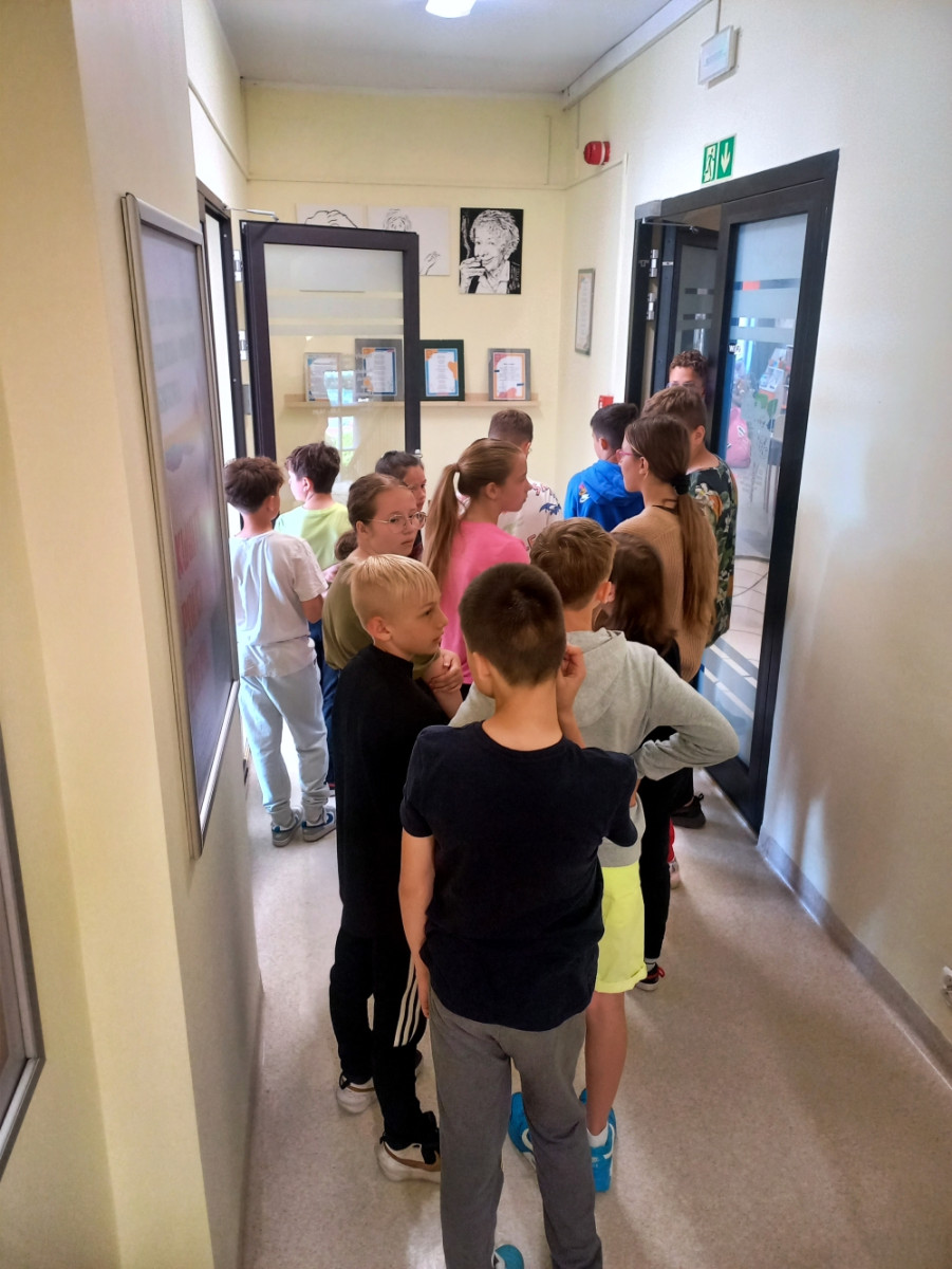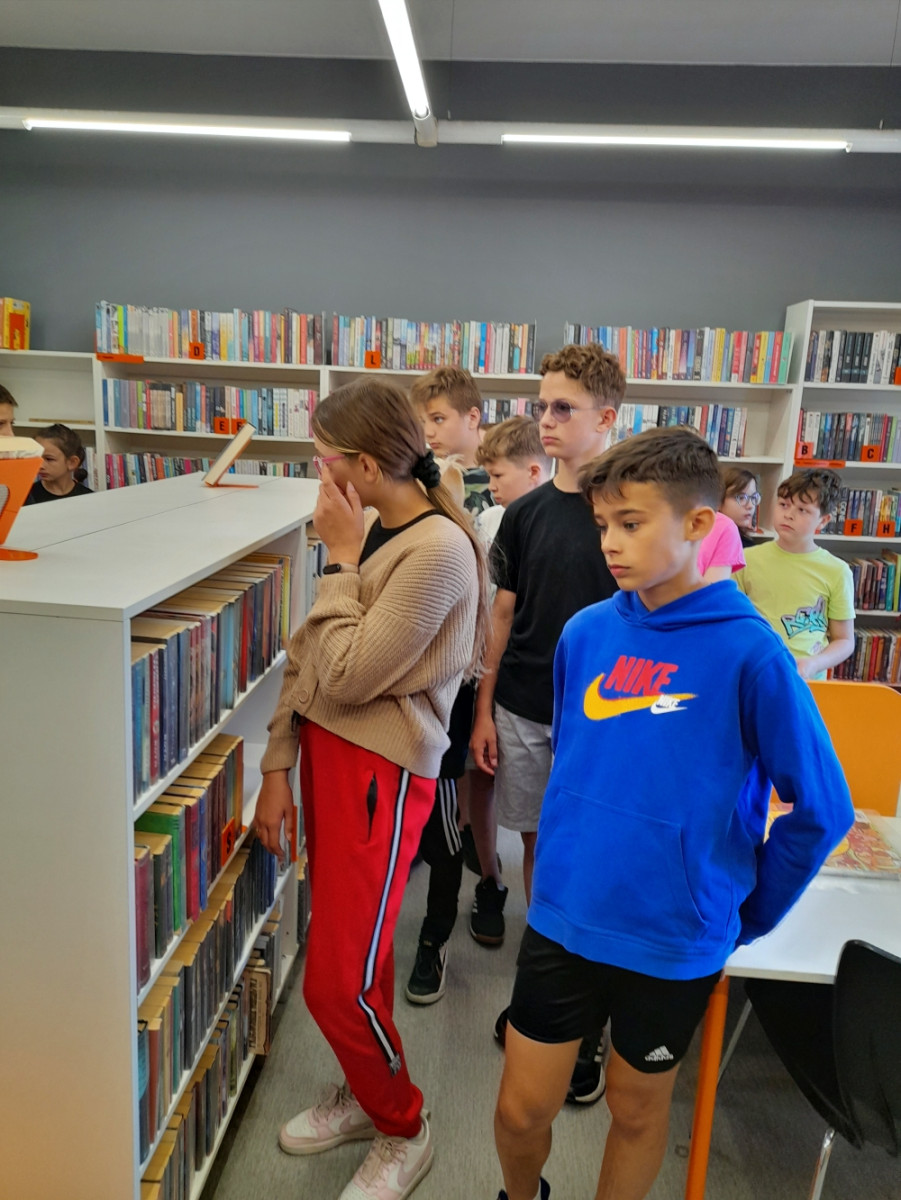 2 Czerwca 2023W słoneczne, środowe przedpołudnie gościliśmy grupę uczniów z klasy piątej razem z polonistką panią Joanną Szymańską- Andrzejczuk. Młodzież rozpoczęła wizytę w bibliotece od podziwiania barwnego muralu, który widnieje na gmachu biblioteki. Później młodzież miała okazję zapoznać się z zasadami regulaminu naszej placówki oraz zwiedzała jej agendy mieszczące się na I piętrze - Bibliotekę dla Dzieci i Młodzieży „Pod Sową”, Wypożyczalnię i Czytelnię oraz podziwiała XII Międzynarodową Wystawę Ekslibrisów i Małych Form Graficznych ”Kwiaty. Poeci Ziemi”.