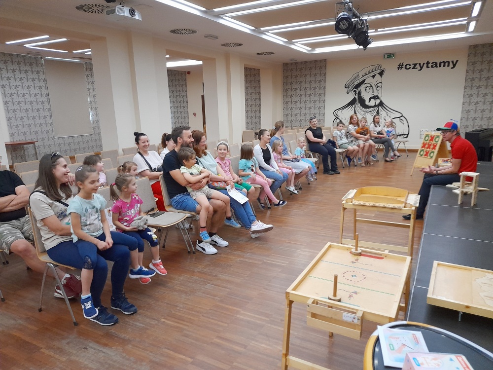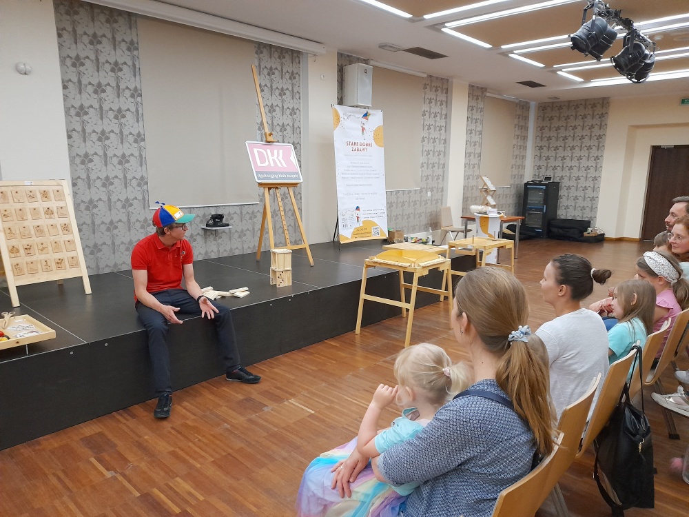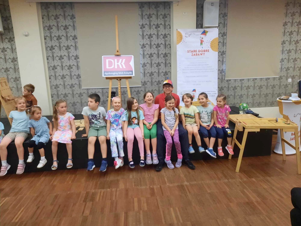 17 Maja 2024Po raz kolejny, Biblioteka dla Dzieci i Młodzieży "Pod Sową" zaprosiła na spotkanie w ramach Dyskusyjnego Klubu Książki dla Rodziców, realizowanego pod patronatem Instytutu Książki. Cykl spotkań DKK dla Rodziców, to przestrzeń dla omawiania zagadnień z psychologii, pedagogiki, logopedii, medycyny - oparta o literaturę zalecaną przez specjalistów z danej dziedziny. Wydarzenia te dedykowane są rodzicom, chcącym doskonalić swoje kompetencje rodzicielskie. Tym razem na spotkanie zaproszeni byli rodzice wraz dziećmi. Na spotkaniu bowiem gościliśmy autora książki "Stare dobre zabawy" - Michała Kowalczyka. Autor, jest dobrze znanym oleśniczanom animatorem zabaw dla dzieci. Jego firma Centrum Zabaw Aktywna Rozrywka CZAR ANIMACJE od siedmiu lat organizuje i wspiera szereg imprez. Dzieci obchodzą urodziny z animatorami „Czaru”, a warsztaty, zajęcia i zabawy organizowane przez pana Michała zawsze przyciągają liczne grono uczestników. Pan Michał Kowalczyk ma wspaniały kontakt dziećmi, bo, jak twierdzi, praca z dziećmi to jego pasja.