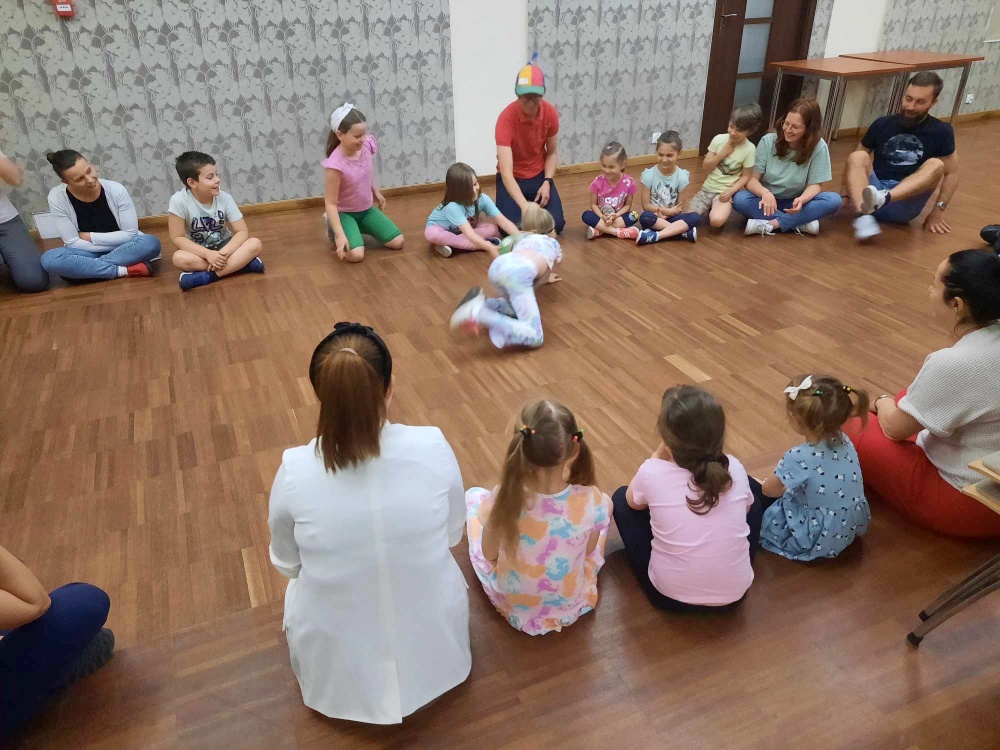 Druga część spotkania zapewniła możliwość wypróbowania zabaw, o których opowiada książka. Rodzice wraz dziećmi bawili się w cymbergaja, w ogonki czy w dziadka kalesony... Nie brakowało ruchu, śmiechu i wspaniałej atmosfery.