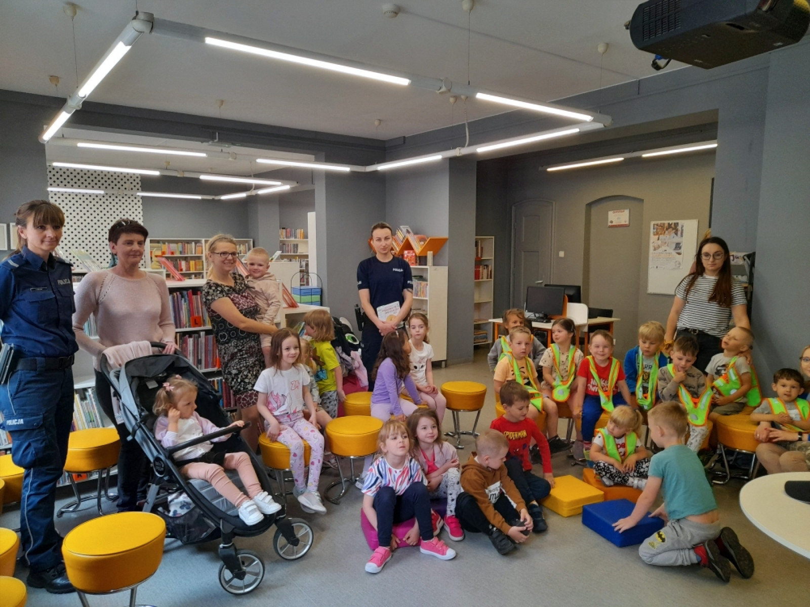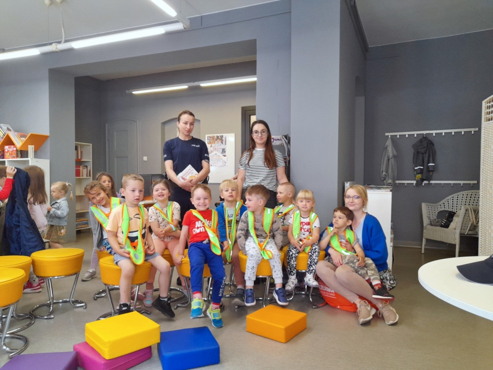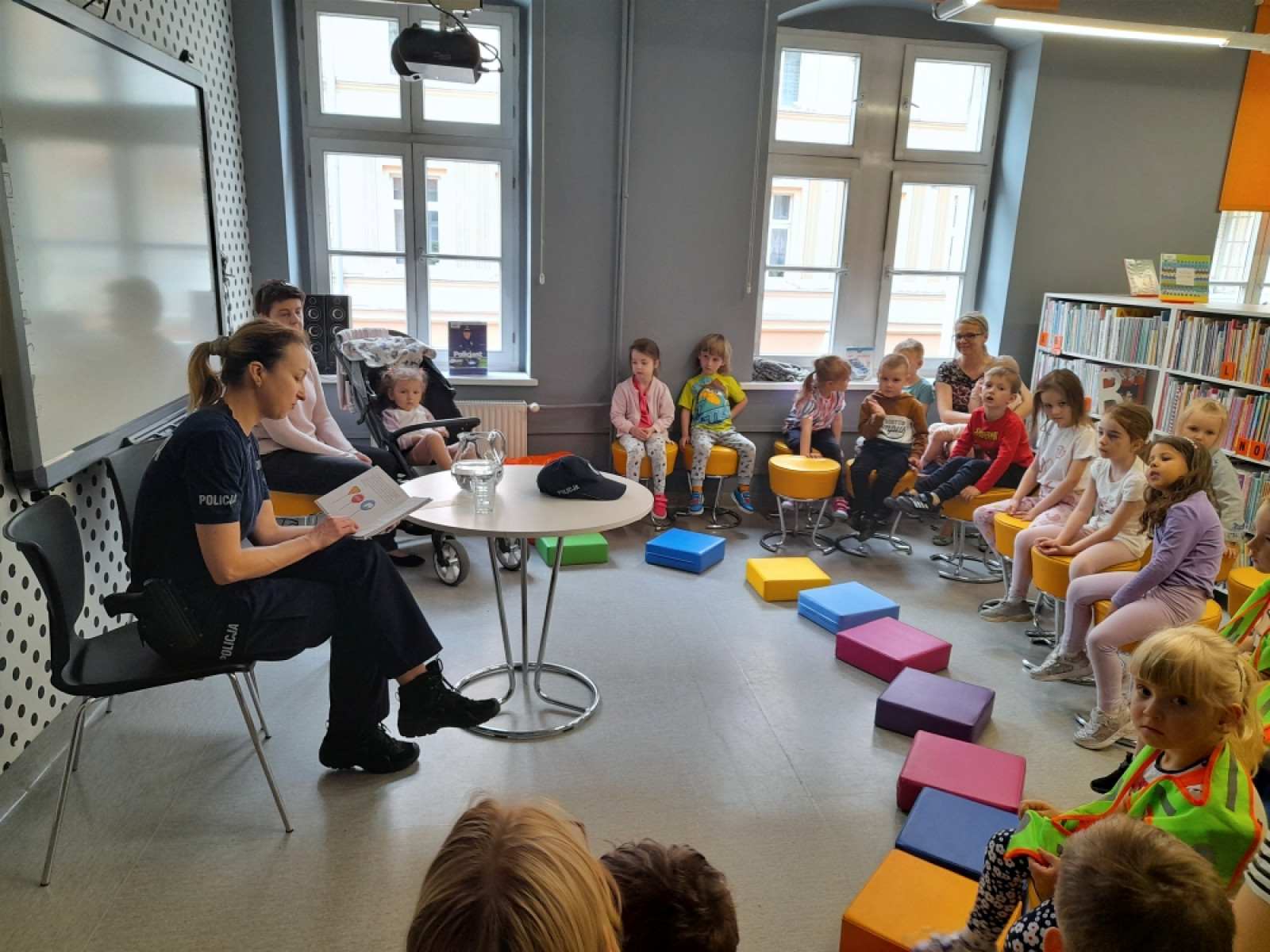 Na kolejne spotkanie w ramach Ogólnopolskiego Tygodnia Czytania Dzieciom zaproszenie przyjęły dzieci z przedszkoli Klub Malucha "Chatka Puchatka" oraz grupa "Biedronki" z Przedszkola "Zielone Ogrody". Gośćmi czytającymi, były Panie policjantki starszy sierżant Karolina Walczak i aspirant Paulina Jaśkowska z Powiatowej Komendy Policji w Oleśnicy. Sympatyczne panie policjantki, oprócz odczytania tekstu "Policjant” Renaty Piątkowskiej, opowiadały o swojej pracy oraz przypomniały zasady bezpiecznego poruszania się pieszo i na rowerze. Nie zabrakło informacji o numerze alarmowym i korzyściach z używania na co dzień elementów odblaskowych .Radosne przedszkolaki przekazały na koniec spotkania pozdrowienia dla ich ulubionego komisarza Lwa.