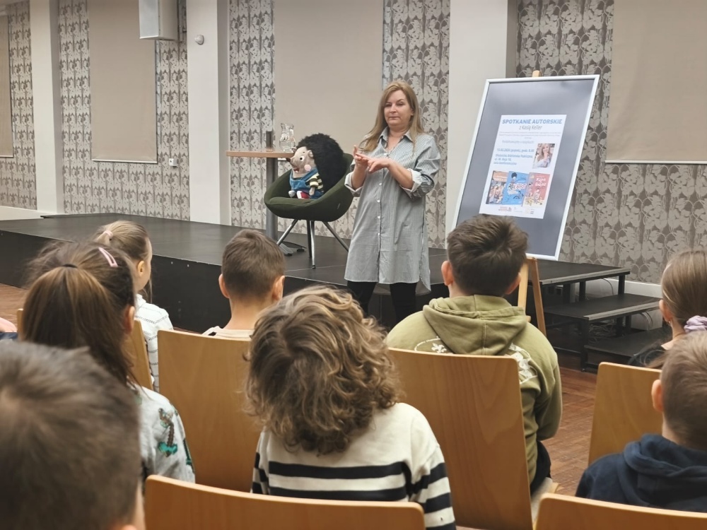 Podczas spotkania pani Kasia opowiedziała uczestnikom o tajnikach pracy pisarza, o tym, co ją inspiruje i skąd czerpie pomysły na historie o bohaterach swoich książek.