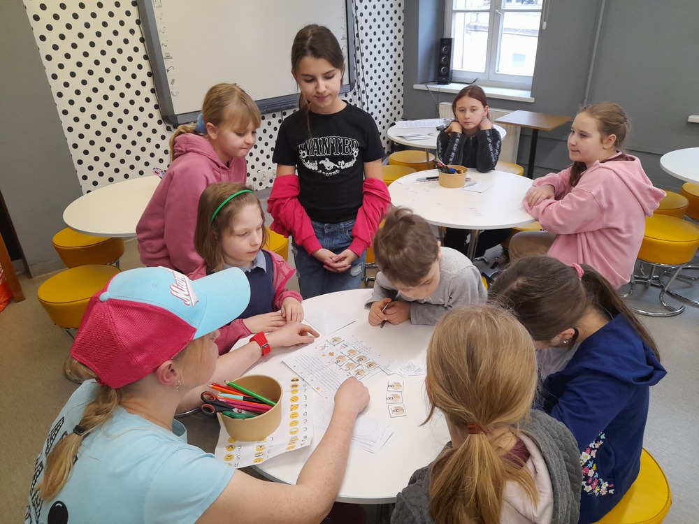 Spotkanie rozpoczęło się od pełnej emocji zabawy – paczka z przypinkami "zaginęła", a uczestnicy musieli ją odnaleźć, rozwiązując różne zagadki, szyfry i zadania. To świetnie wprowadziło dzieci w temat zajęć i rozbudziło ich kreatywność.
